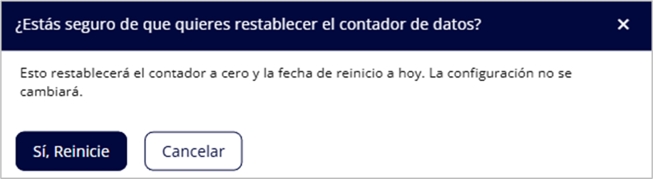 Haga clic en restablecer datos para reiniciar el contador de datos.