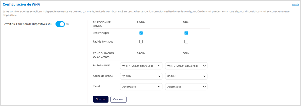 NOTA: Esta selección afecta tanto a la red principal como a la red de invitados.