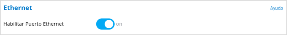 Habilitar Puerto Ethernet: Cuando está encendido, el puerto Ethernet está habilitado.