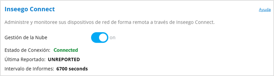 Gestión de la Nube: Por defecto, la conexión a Inseego Connect está activada.