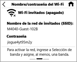 Deslice hacia la izquierda para ver las credenciales de la red de invitados.