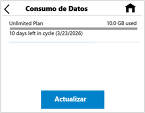 NOTA: La información de uso de datos que se muestra es una estimación y puede diferir de las cifras oficiales de AT&T. Consulte siempre su cuenta de AT&T para obtener información precisa sobre el uso de datos.