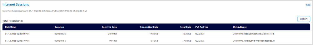 Use this section to export and view internet session data.