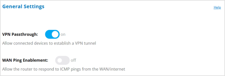 VPN Passthrough: To allow connected devices to establish a VPN tunnel, ensure the slider is on.