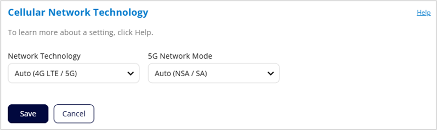 Use this section to configure the network technology and 5G network mode for your MiFi.