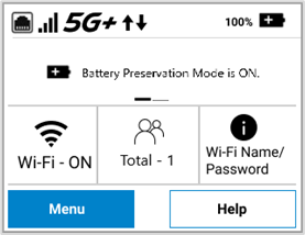 Once Battery Preservation Mode has been activated, your MiFi no longer charges to 100%. Initially, the charge level is between 70% and 99% and eventually, 70% to 80%. If this is not desired, you can disable Battery Preservation Mode on the touchscreen (Menu > Settings), or on the admin web UI (Administration > Preferences).