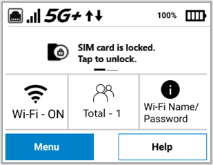 You can create a PIN code to lock your MiFi SIM card on the admin web UI (Network > Cellular > SIM Lock Settings). When the SIM is locked, your MiFi will not have access to the internet. A display appears in the InfoPanel of the Home screen.