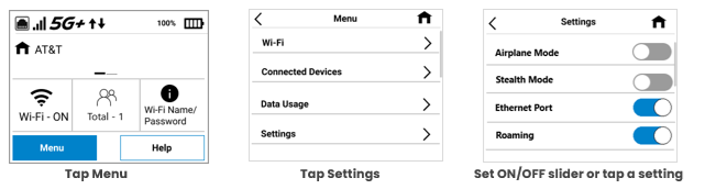 Use the Settings screen to change various MiFi settings or reset your MiFi to the original factory settings.