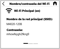 Toque Nombre de Wi-Fi/Contraseña en la pantalla de inicio. Se mostrarán el nombre y la contraseña de su red principal MiFi.