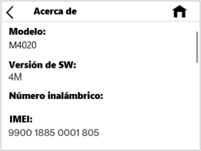 La pantalla táctil Acerca de proporciona la siguiente información:
