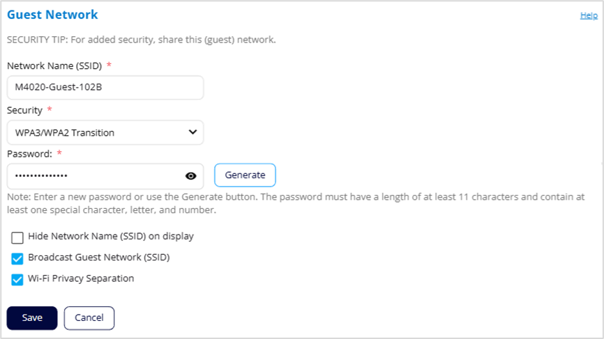 Password: Enter a Wi-Fi password, or you can use the Generate button.