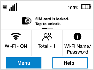 You can create a PIN code to lock your MiFi SIM card on the admin web UI (Network > Cellular > SIM Lock Settings). When the SIM is locked, your MiFi will not have access to the internet. A display appears in the InfoPanel of the Home screen.
