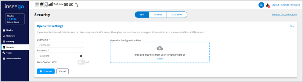 Your FX4100 allows you to establish secure connections to remote networks over a public network using OpenVPN.