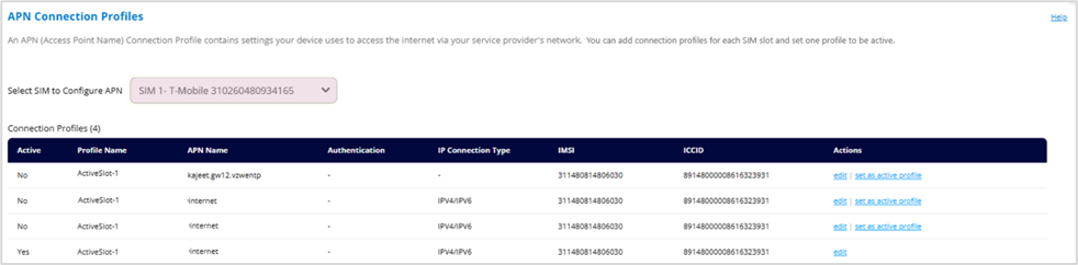 Add Connection Profile: Click this button to add an additional APN connection profile.