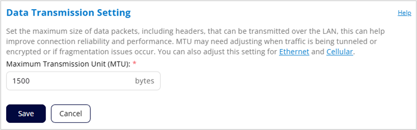 NOTE: You can also adjust the MTU for Cellular on the Cellular tab and for the WAN Ethernet connection on the Ethernet tab.