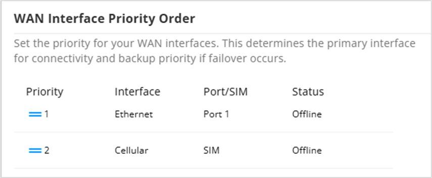 Priority: Drag the two blue lines up and down to change the priority of the interfaces.