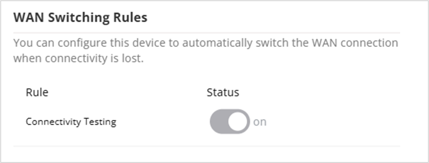 Connectivity testing is on by default and cannot be adjusted. To turn connectivity testing off, disable keep alive below.