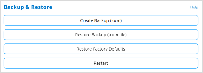 NOTE: The backup file cannot be edited or viewed on the downloaded system or on any other device. This file can only be restored for this model of router, and settings can only be viewed or changed using the admin web UI.