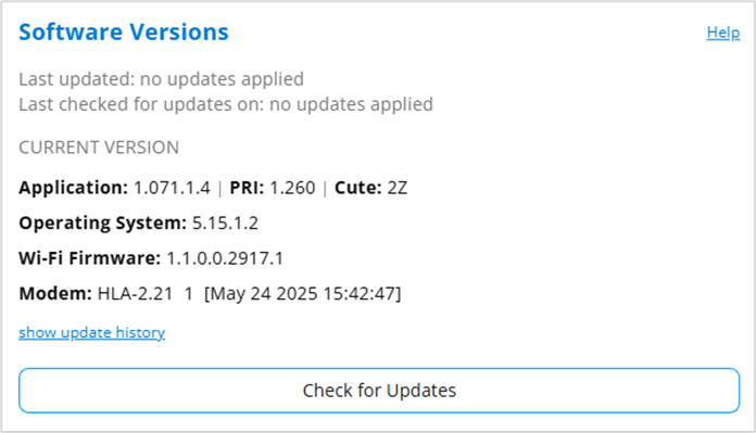 Software updates are delivered to your FX4100 automatically over the mobile network. This section displays current software version information, software update history, and allows you to check for new software updates for your router.