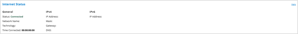 IP Address: The global IPv6 address for the router (blank if IPv6 is turned off or is not supported by the current network connection or operator).
