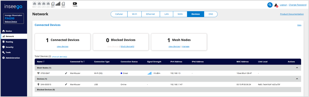 This tab provides details about each device connected to your router and any mesh nodes in your network. It allows you to edit how device names appear in the UI. You can also block or unblock devices from internet access.