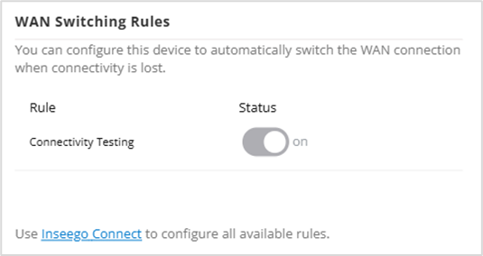 Connectivity testing is on by default and cannot be adjusted. To turn connectivity testing off, disable keep alive below.