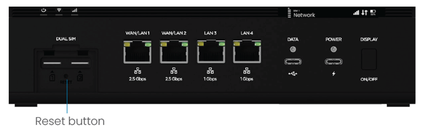 You can restart or reset your FX4200 to factory settings from the admin web UI, Inseego Mobile app, Inseego Connect or by using the reset button on the router.