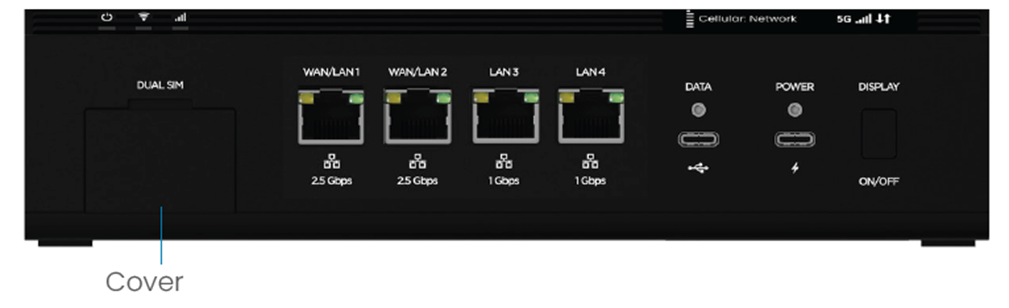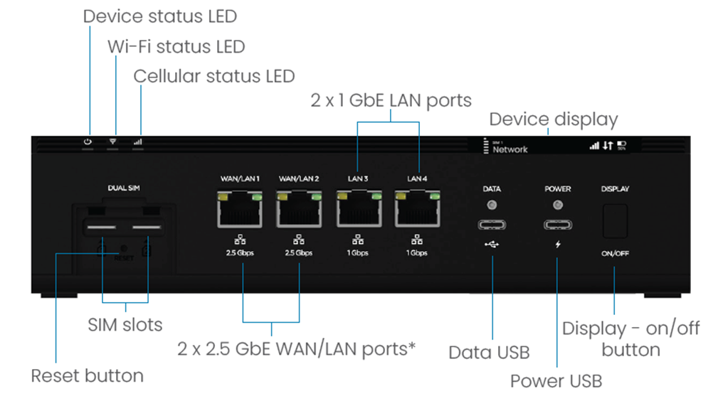 * 2.5 GbE Ethernet ports can be configured as WAN or LAN in the admin web UI Network > Ethernet tab, or with Inseego Connect WAN Settings.