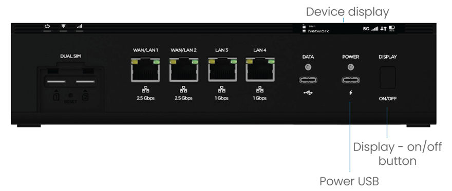 2. Wait for the router to power on. This can take up to three minutes. You’ll know it’s powered on when the device display shows your cellular network name and arrows indicating traffic is active.